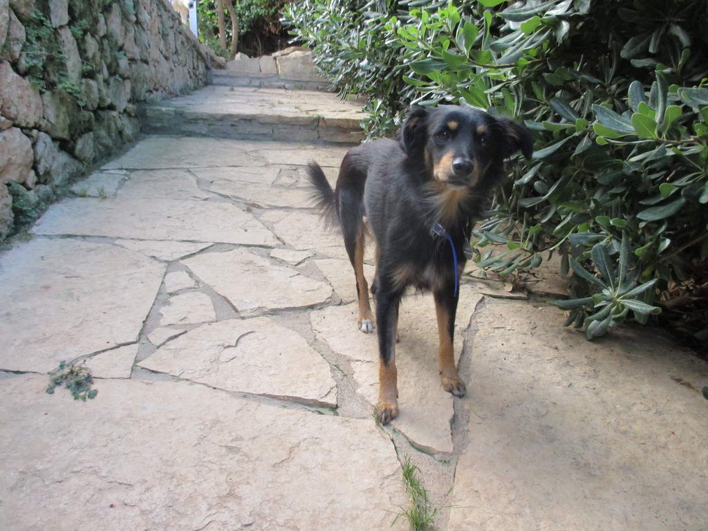 Ivanoi, used to live in a neighborhood in Rethymno, was very thin and scared. Now he is a very cute dog, social with the people, other dogs and cats.