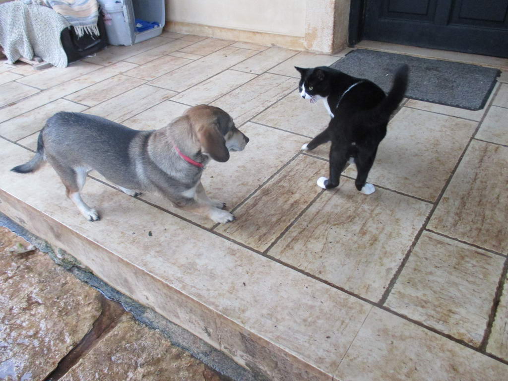 She is friendly and playful with the other dogs and cats, social with the people.