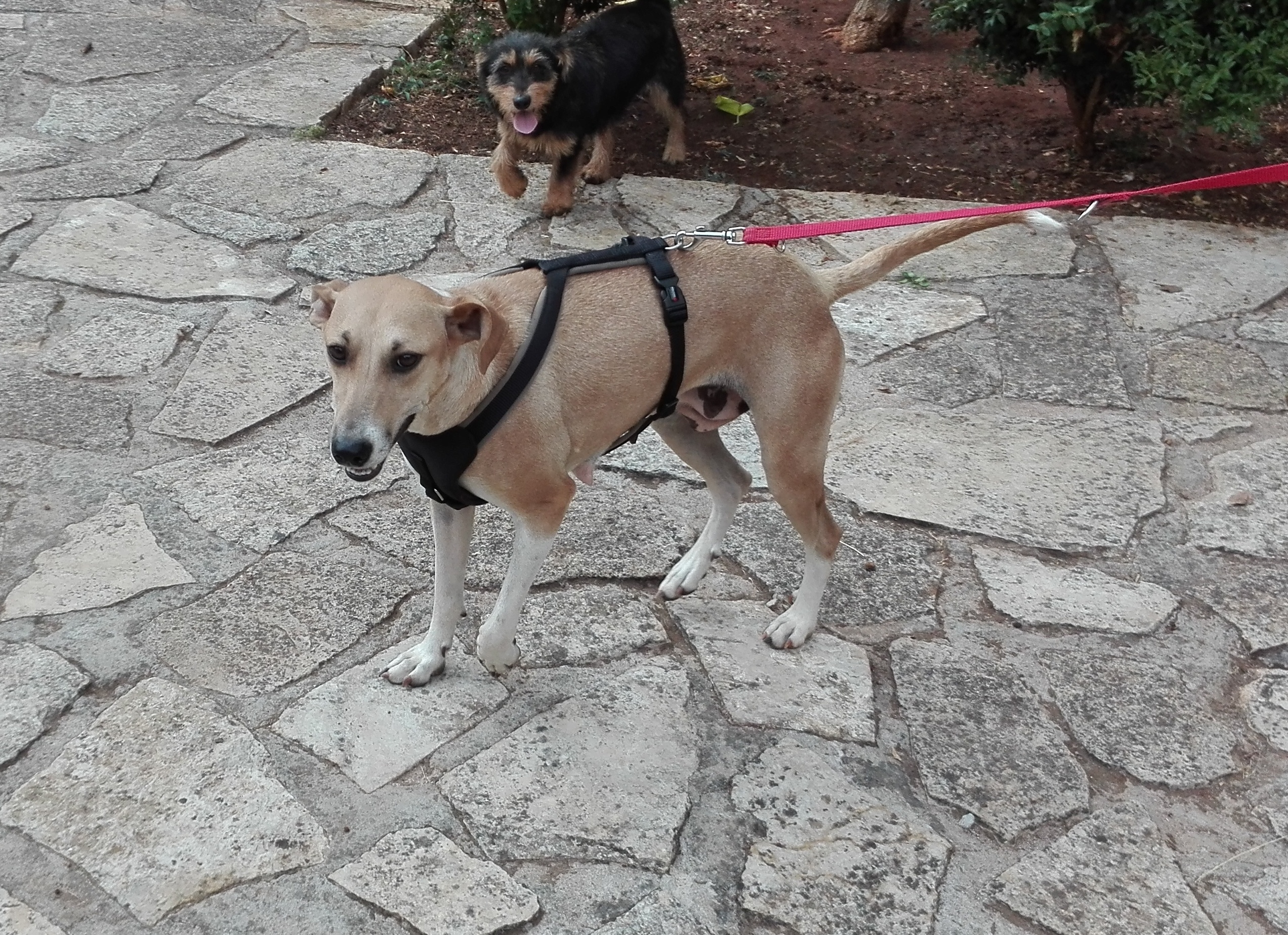 Helectra abantoned in a village and gave birth 8 puppies. She is a very friendly and social dog, good with the other dogs and cats.
